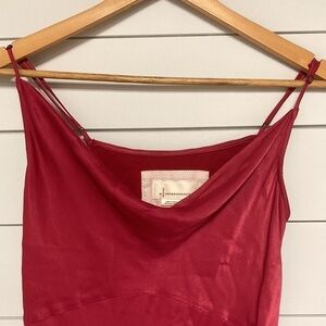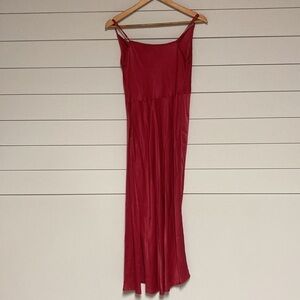 Size small Anthropologie maxi dress. Berry fuchsia. Adjustable spaghetti straps. Slight cowl neckline. Side slits. Pullover style. 100% viscose.