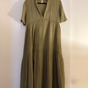 Anthropologie 100% Cotton Gauze Green Lightweight Loose Fit Kallie Maxi Dress