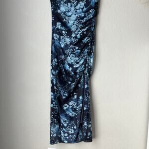 Anthropologie Maya Blue Floral Print Ruched Mesh Cowl Neck Midi Dress Size XS