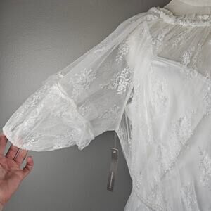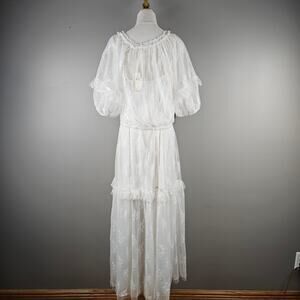 Anthropologie Me Be Ruffle Short Puff Sleeve Maxi Dress Wedding White Boho Cottagecore Lace