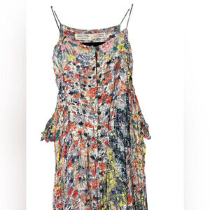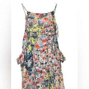 Anthropologie Meadow Rue Allerton Maxi Dress Floral Halter Buttons Ruffles Size Medium - Primary Colors Red Yellow Blue Pink - Button Front - Excellent condition