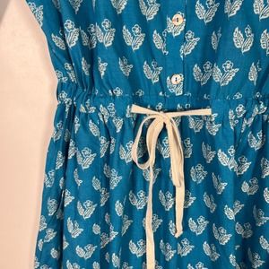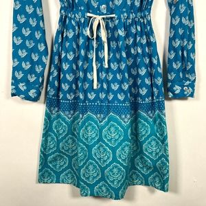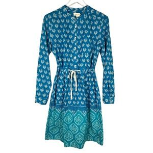 Anthropologie Meadow Rue Anila Shirtdress 4 Blue Teal Drawstring Waist Dress