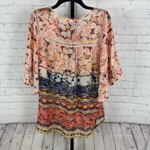Anthropologie Meadow Rue blouse size large. Sheer, peasant style top. Floral, tie front. Excellent condition. Smoke free home.