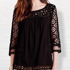 Anthropologie Meadow Rue Black Lace Top Size Medium