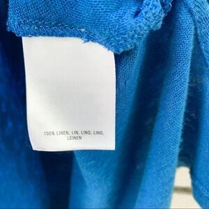 Yale blue. 100% knit linen. Asymmetrical hem. Slit on left hip. Cap sleeves. V-neck opening. Size S. Excellent used condition.