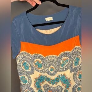 Anthropologie Meadow Rue Boat Neck Paisley Silk Shift Dress Medium