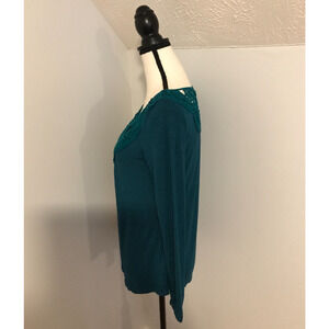 Anthropologie Meadow Rue Bobbinlace Teal Long-Sleeve Tee - Extra Small