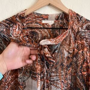 Anthropologie Meadow Rue Briarcliff Burnout Tie Neck Blouse Top Medium Brown