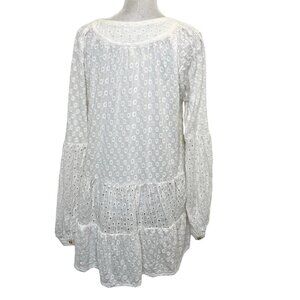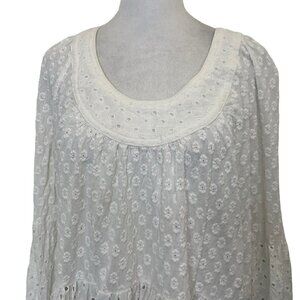 Anthropologie Meadow Rue Eyelet Floral Embroidered Boho Top White size Small