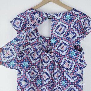 Anthropologie Meadow Rue Flutter Sleeve Blouse Geometric Colorful Boho Print 6