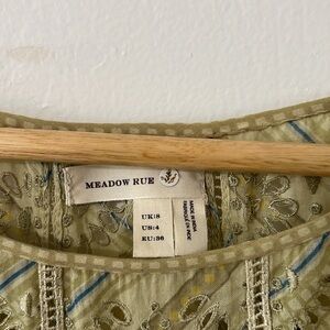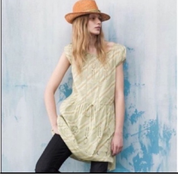 Anthropologie Meadow Rue Green Eyelet Cotton Dress Size 4