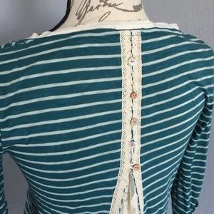 Anthropologie Meadow Rue Lace Top Stripped Teal