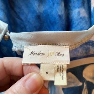 Anthropologie Meadow Rue Linen Fields Swing Top Blue Floral Asymmetric boho art