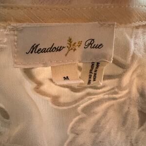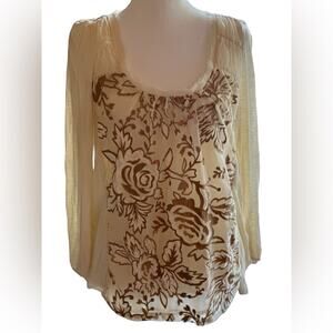 Anthropologie Meadow Rue Mariana Burnout top, size M. Beautiful gold floral on cream boho style top. Scoop neckline with mesh frayed fabric detail. Great condition. Please see photos for measurements.