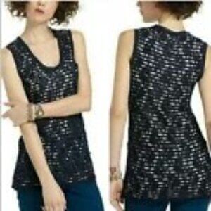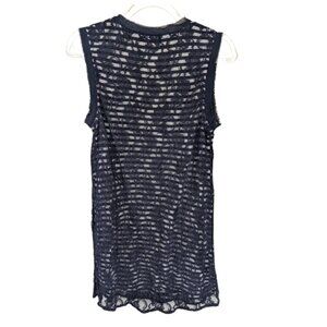 Anthropologie Meadow Rue Navy Blue Striped w/ Lace Overlay Tunic Tank Top Size M