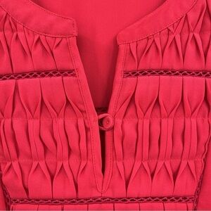 Anthropologie Meadow Rue Red Chiffon Roll-Tab Sleeve Popover Tunic Blouse Top, Women’s Size Medium.