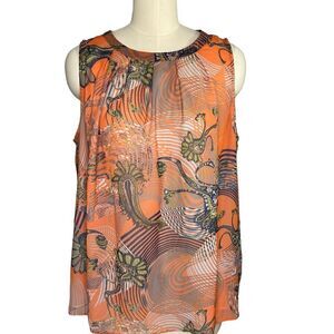 Lightweight orange chiffon paisley print, sleeveless, fully lined, perfect condition
