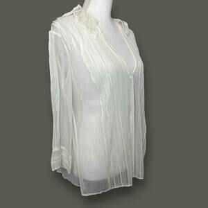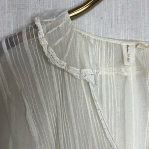 Anthropologie Meadow Rue Size 10 Off White Sheer V-Neck Gauze Victorian Blouse