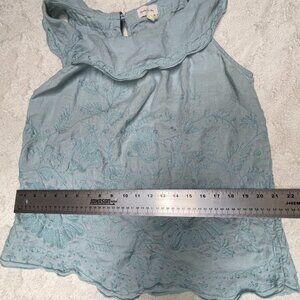Anthropologie Meadow Rue Womens Embroidery Ruffle Neck Linen Top Size 12 Blue