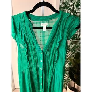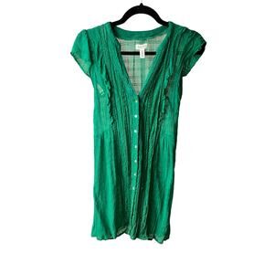 Anthropologie Meadow Rue Women's Green Button Down Mini Dress Size 4