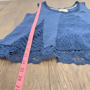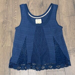 Anthropologie Meadow Rue Women's Sleeveless Swing Crochet Lace Top Size Large. Navy Blue