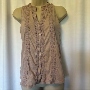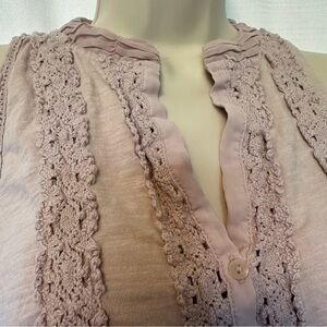 Anthropologie Meadow Rue XS Jenson Sleeveless Button Embroidered Dusty Mauve Top
