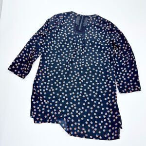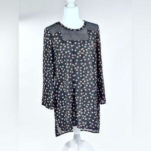 Anthropologie Meadow Rue long tunic sheer floral pattern blouse M