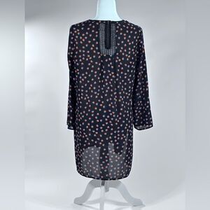Anthropologie Meadow Rue long tunic sheer floral pattern blouse M. Black with flowers and cutout around neckline. Exposed zipper on back.