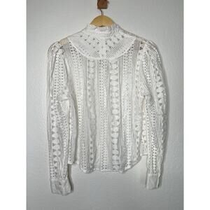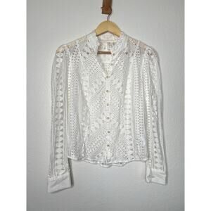 Anthropologie Meadow and Rue White Lace Button Up Blouse Size 6 Boho Romantic