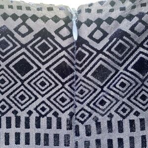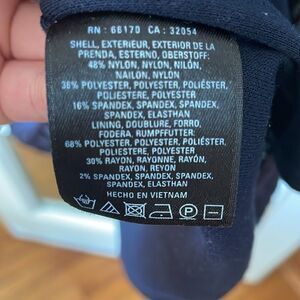 Fully lined beautiful geometric print deep navy blue dress size medium.