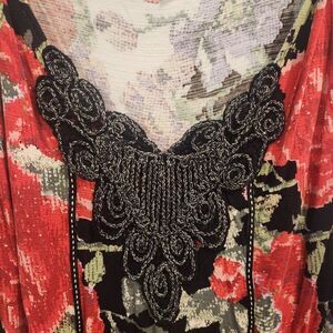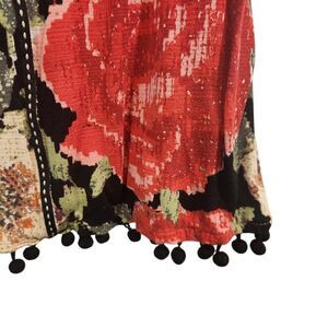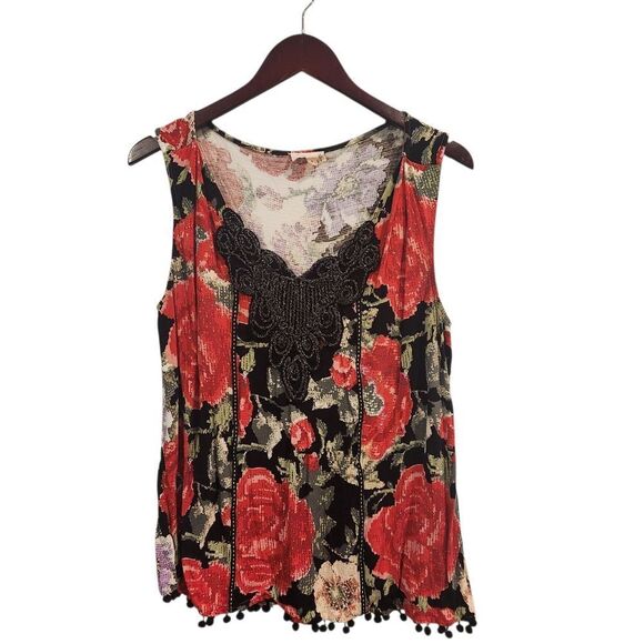 Anthropologie Meadow Rue Floral Sleeveless Tank Medium Red Pom Pom