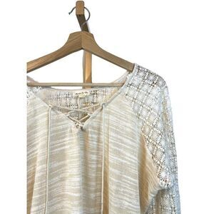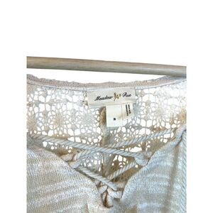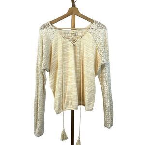 Anthropologie Meadow Rue Long Sleeve Ivory Sweater, Tassels and Crochet Sz S EUC