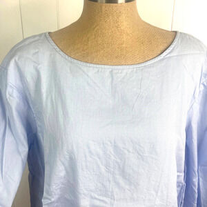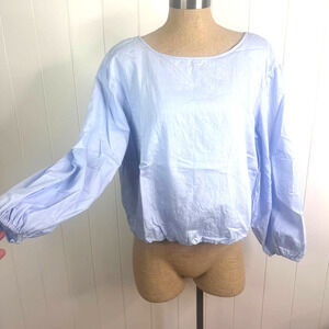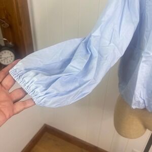 Anthropologie Meave Cropped Blue and White Small Checked Balloon Sleeve Blouse