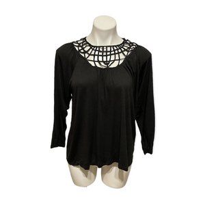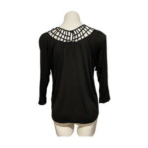 Anthropologie Medium Black Caged Detail 1/2 Sleeve Top NEW WITH TAGS