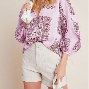 Anthropologie Megan high rise patch pocket shorts. Tan in color. In good preowned condition. No stains. Cuffed hems. Button with Zip Fly. 2 front patch pockets. 2 back pockets. Linen blend. Waist measures 28 inches. Rise 13 inches. Inseam cuffed 3.5 inches. Uncuffed 4.5 inches. Comes from a smoke free home.