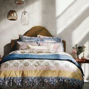 Anthropologie Meguro Cream Body Blue Red Reversible Boho Cotton Queen Duvet