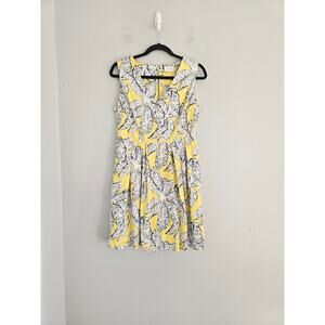 Anthropologie Melloday Yellow Leaf Dress M, Sleveless, v neck front with back zipper closure. Beautiful Yellow Leaf like design