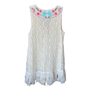 Anthropologie Mermaid Embroidered Crochet Fringed Mini Dress size Medium