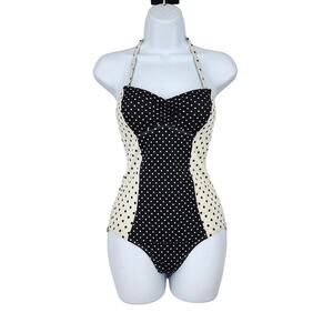 Anthropologie Mermaid Retro Inspired One Piece Polka Dot Swimsuit Size XS