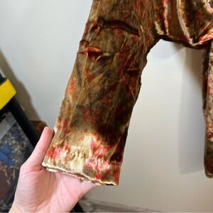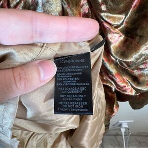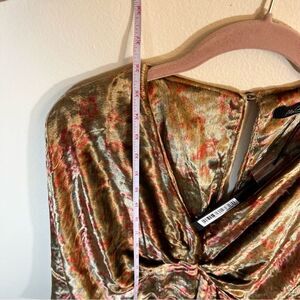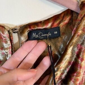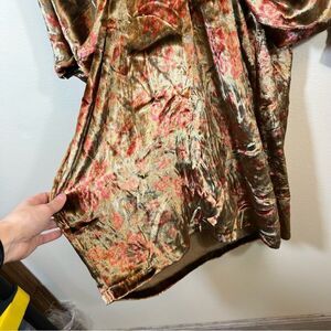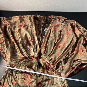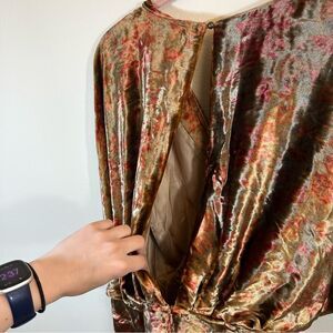 Mes Desmoiselles women’s brown floral velvet V-neck batwing sleeve dress. Cut out in back.