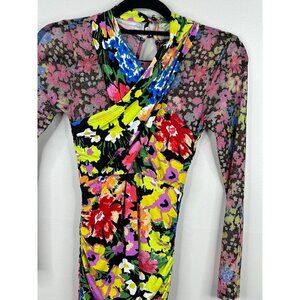 Anthropologie Mesh Halter High Neck Dress Floral Bodycon Midi Colorful Size XXS