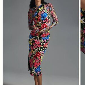 Anthropologie Mesh Halter Mock Neck Midi Dress