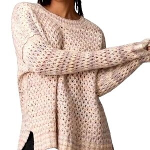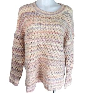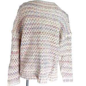Item: Women's Mesh Oversized Open Knit Pastel Striped Sweater