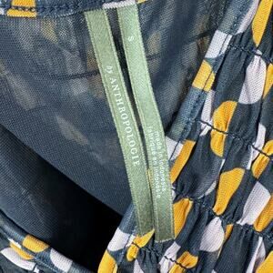 Anthropologie Mesh V-Neck Geometric Print Tank Top Small Navy Peplum Chic