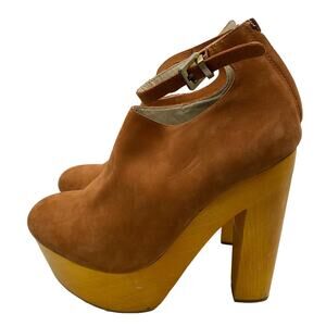Anthropologie Messeca New York Brown Nubuck Leather Platform Ankle Boots 8.5M