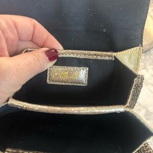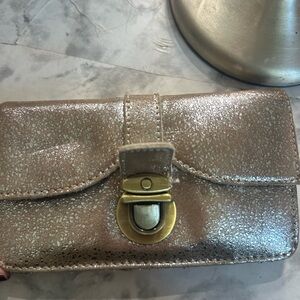 Chic metallic wallet with a secure clasp. Perfect for essentials. Stylish and compact.