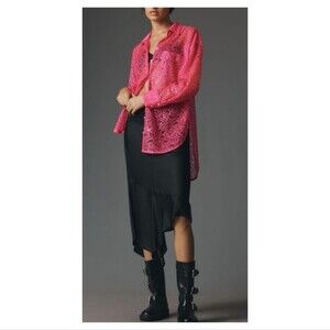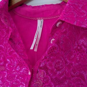 Anthropologie Metallic Lace Buttondown Shirt Pink NWT