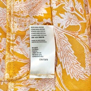 Refresh your wardrobe staples with this chic, colorful & breezy Anthropologie Mia Tiered Floral Ruffle Trim Sheer Tunic Blouse in yellow with contrasting white floral details & bronze tone buttons. Crafted with a breathable & lightweight 100% viscose chiffon fabric. Perfect on its own or as a layering piece. In excellent preowned condition, no stains or tears.