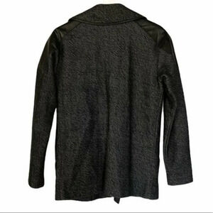 Anthropologie Michael Stars Blue Tweed Side Zip Leather Shoulder Moto Jacket XS