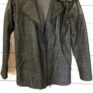 Michael Stars Leather Tweed Moto Side Zip Jacket